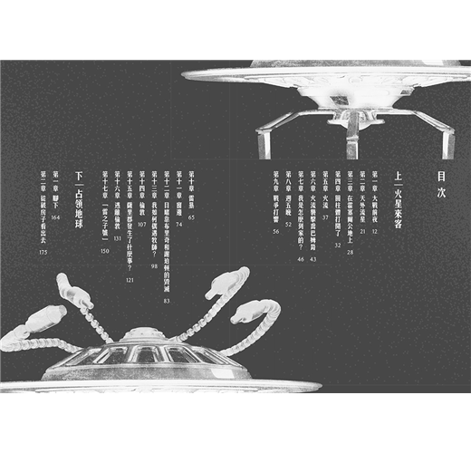 我記得,在望遠鏡的視野裡,臨近火星的地方還有三個淡淡的光點,那是三顆非常遙遠的星體。環繞它們的,便是深不可測的黑暗虛空。霜凍時節,黑暗的天宇中點綴著星光,你可以想像那景象。透過望遠鏡去看,黑暗顯得更加幽遠深邃。火星人給我們送來的東西,正保持著每分鐘數千英里的速度朝我們靠近,但它太小太遠,我當時並沒有看見。那東西將給地球帶來無法想像的痛苦和災難。觀察星空的我做夢也想不到——整個地球上都沒有人會想到,那夜空裡有一枚無比精準的導彈。