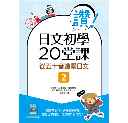 《讚!日文初學擊日文20堂課:從五十音進》第一冊先從五十音假名學習開始,完整介紹完假名之後,開始進入名詞、形容詞等句型會話內容。