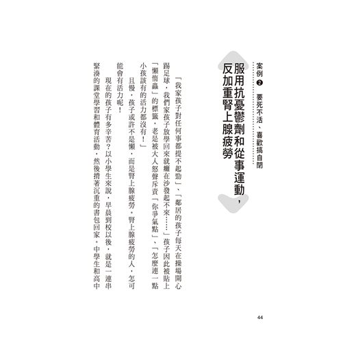 「嗄,不會吧,這些表現都和腎上腺疲勞有關?」你或許感到無法置信。別懷疑,一旦陷入腎上腺疲勞狀態,當事人即使想要振作,也是心有餘而力不足,無法切換到「啟動模式」,所以專注力差;一早起床渾身倦怠,毫無這年紀孩子應有的朝氣活力;無論如何糾正,還是讀錯音、寫錯字……