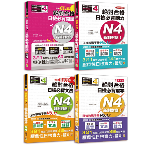 熟練「日檢N4熱銷套書」,「單字,文法,閱讀,聽力」一次就過關!