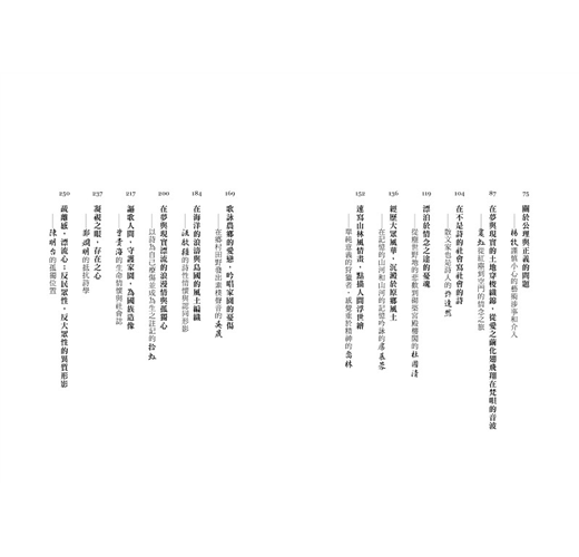 戰後台灣現代詩風景的開展,我以「雙重構造的精神史」視野,論述了「跨越海峽」的十二位詩人,「跨越語言」的八位詩人。流亡,殖民性對照在地,被殖民性;語言優勢,政治優勢對照語言劣勢,政治劣勢。但在戒嚴、專制體制之下,都是某種意義上的受害者。國共內戰失敗,跨越海峽的詩人隨國民黨中國來台,在反共國策指導,脅迫、流亡的主題無法被真正觀照,只能片面仇共,並沒有追索左右政治撕裂的民族傷痕。而跨越語言的詩人們,在失語狀況下,也受反共國策指導,無法反思之...