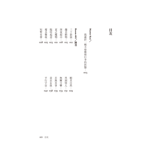 正常來說,房內的人各過各的生活,不太有相互打擾的機會。但是讀者手握「Master Key」,可以輕易地穿梭在各樓層之間,旁觀住客的怨懟與哀愁。如果被嚇到了,無妨,就從「Emergency Exit」倉皇離去。