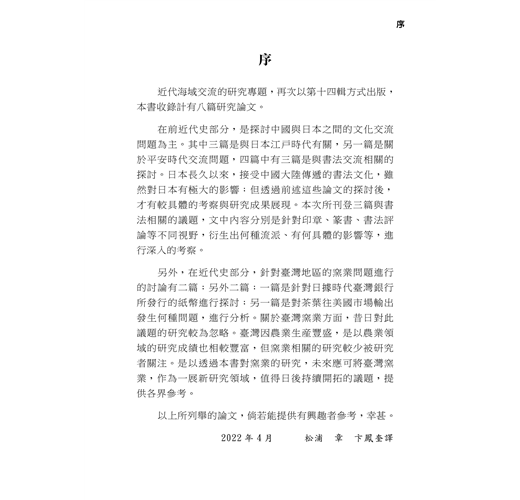 本書是以《近代東亜海域交流:文化傳播與文化變遷》為題名,針對前近代時期東亞海域交流所衍生之各種狀況等問題,進行深入之探討。