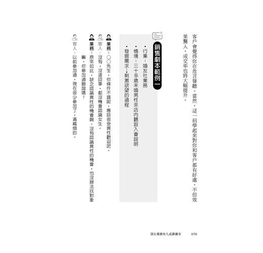 ◎客戶包括Google、Yahoo、瑞穗銀行、朝日電視台的王牌業務員告訴你,善用銷售劇本,成交率高達80%!。