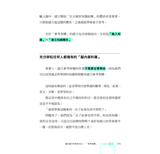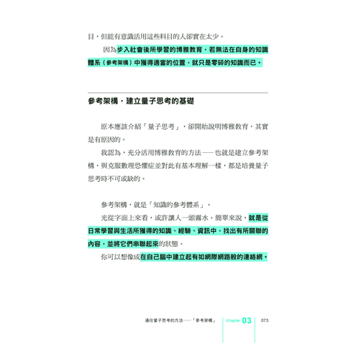 一、以目前為止所累積的各種知識和經驗為基礎,在腦中建立參考架構(知識體系);