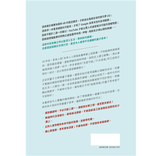 本書將從令人驚豔的實例開始,除了帶領讀者一窺量子科技的堂奧,也將告訴大家如何培養量子思考,讓掌握新思維的你可以: