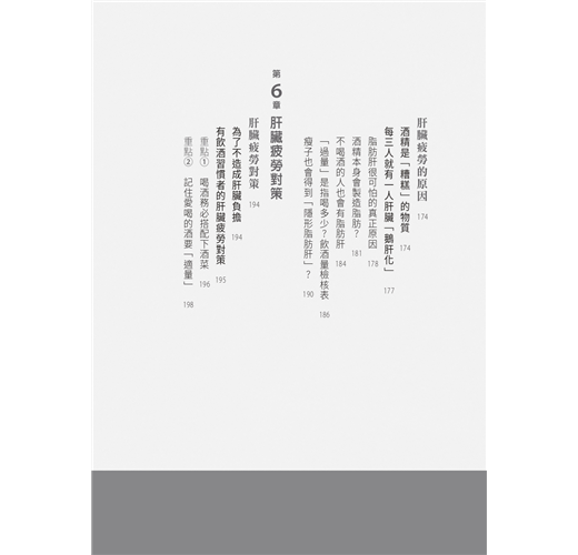 【基本上,肝臟在運作的同時一定會保留多餘的力氣。肝臟對人體來說,負責非常重要的功能;少了肝臟的運作,我們不但無法生成能量,更無法分解毒素。因此,肝臟會在不停工作的同時持續保留力量。所謂「肝臟疲勞」,很難有一個明確的定義,但是基本上當肝功能有自覺異常時,疾病的程度應該已經很嚴重了。好比胃部消化不良,當天就會出現不適等現象,但肝臟並不會出現如此即時的反應。】