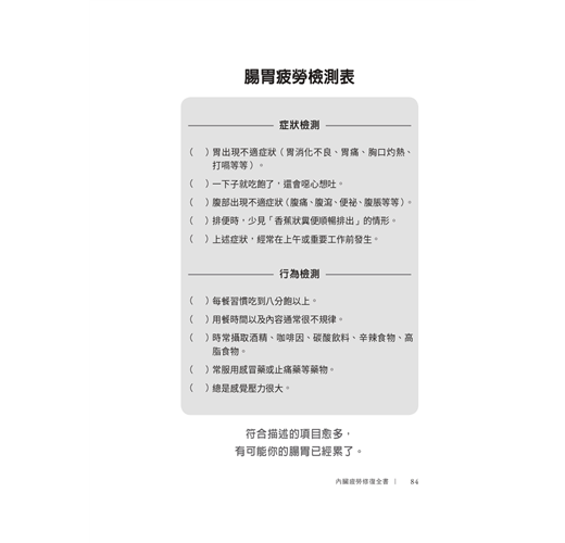 另外想提醒各位,向醫療院所諮詢內臟失調的相關問題時,別使用「內臟疲勞」這個通俗用語,應具體描述症狀才能順利診療。