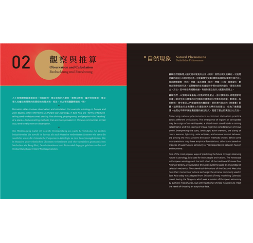 ★由3位東西方占卜研究權威學者及研究策展人共同撰寫專文,內容分別介紹東西方的預知法門、歐洲占卜簡史、以及展覽導讀等,全文中英對照。