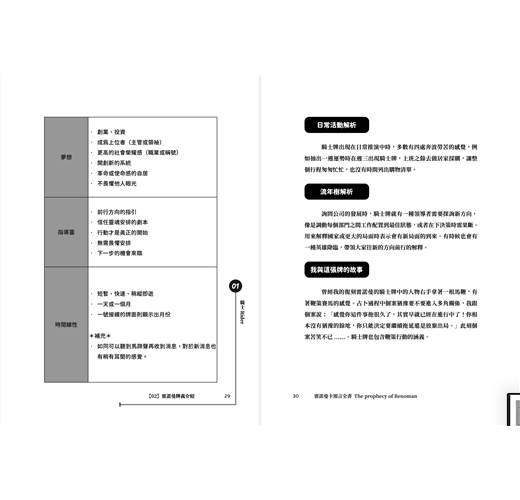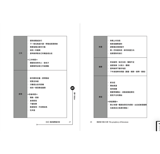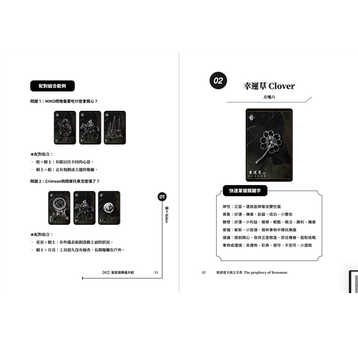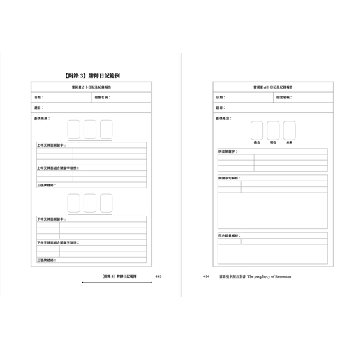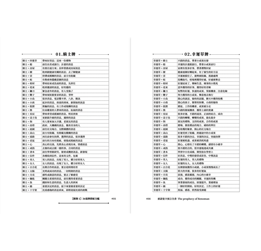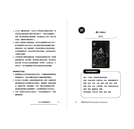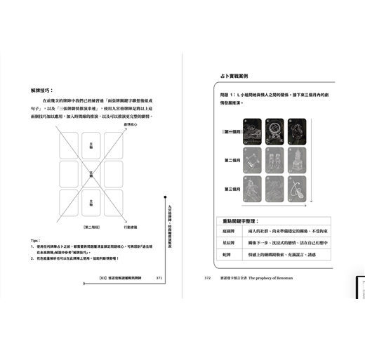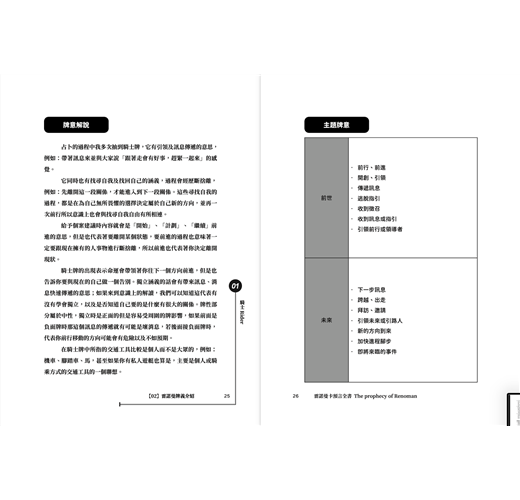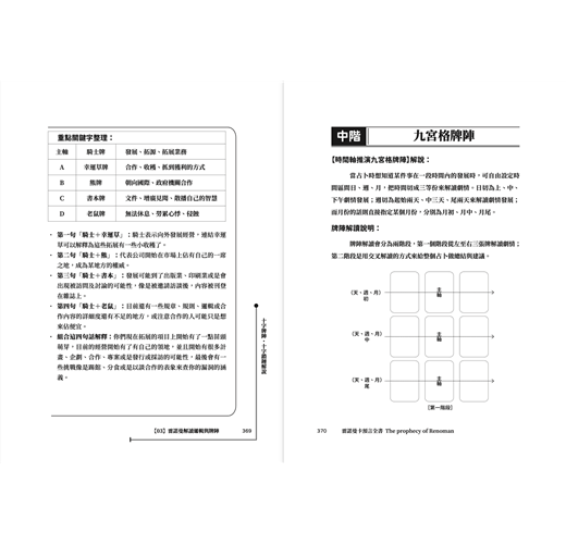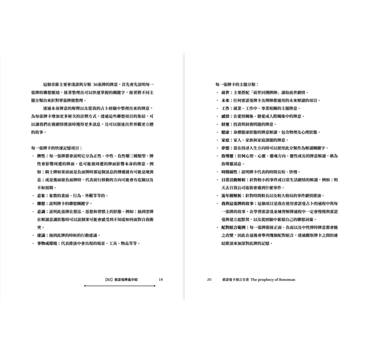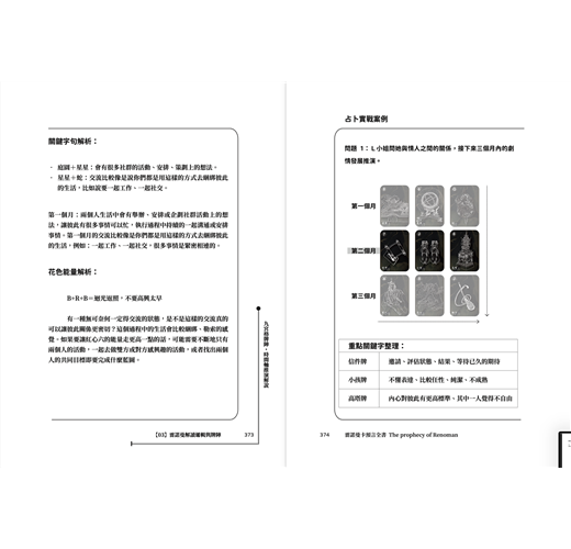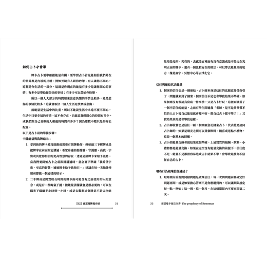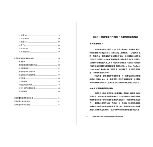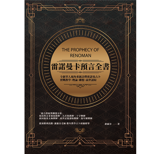因此謝巖谷老師決定要將自己從事雷諾曼教學多年的經驗撰寫成書,並親自繪製並製作專屬教學使用的「前世記憶雷諾曼牌卡」,搭配書籍將可以學到各種占卜技巧,例如.組合搭配與聯想演練、現況與未來發展牌陣、九宮格牌陣、十字牌陣、前因後果太極牌陣、前世今生記憶讀取牌陣、流年樹牌陣.....等等,從初階到高階都濃縮在「雷諾曼預言全書」當中。