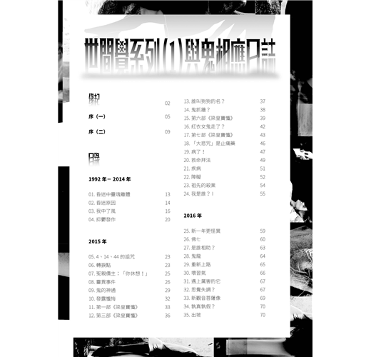 本書作者由發現自己被鬼附身開始,透過親身的靈異經歷,再告訴你一些病痛惡疾、思覺失調、抑鬱跳樓、精神分裂、靈魂離體等神秘難解之事。