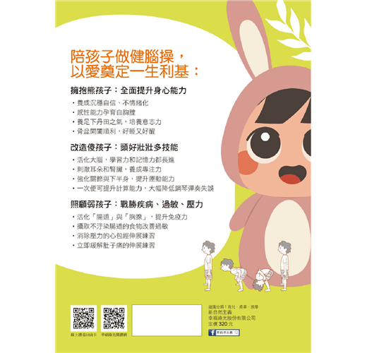 日本專家古久澤靖夫針對提升兒童的專注力、大腦、運動和改善跟父母的關係之間列舉出了許多的體操方法可以讓親子一起互動增進彼此感情!