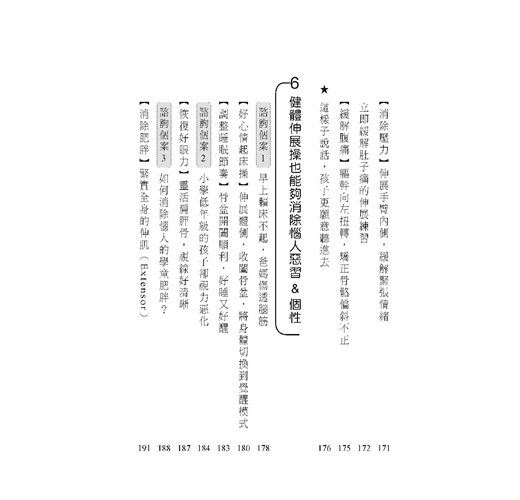 ➢依照最常見的棘手問題把體操歸類,力求讀者能從目錄就看到自己想要的方法。