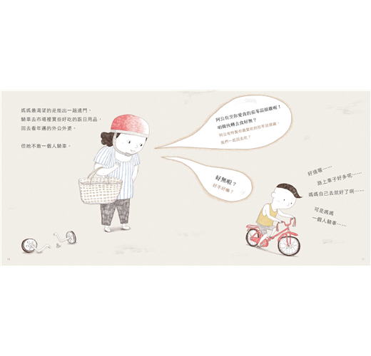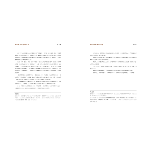 本書圖像由近年來極受注目的圖像創作者周見信操刀,全書圖像聚焦在機車與移動場景,透過各種道路的模樣,映照與詮釋故事中母子情感的圈圈纏繞,圖文完美合奏出一部動人的暖心作品。