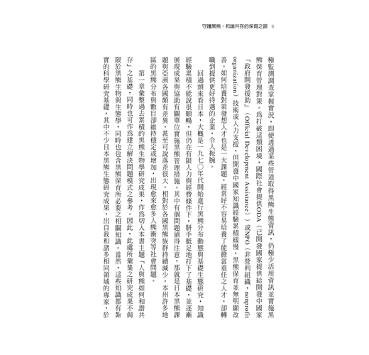 本書分析亞洲黑熊的分布、黑熊傷人事件的可能原因,以及黑熊造成的農損型態,並提出在捕殺之外,各種可嘗試的保育管理模式,都非常值得台灣作為參考與借鏡。