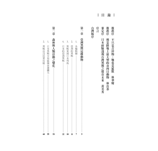 本書彙整了日本黑熊的科學研究成果,並剖析經營管理現況和挑戰,堪稱權威著作,非常值得國人借鏡與參考。若能透過本書吸取日本黑熊經營管理的寶貴經驗,謙卑地學習、記取其失敗或慘痛的教訓,再經由政府支援充足的資源及經費,以落實有科學根據的保育政策,系統地執行長期的野外族群生態研究和監測計畫,同時培育優秀的熊類研究和保育人才,則瀕危物種──台灣黑熊保育成功之日必然指日可待。