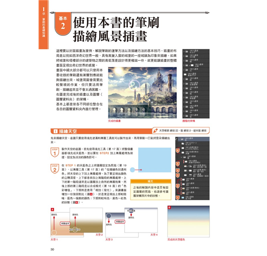 ● 可以從實例中學到筆刷素材使用方法的訣竅。