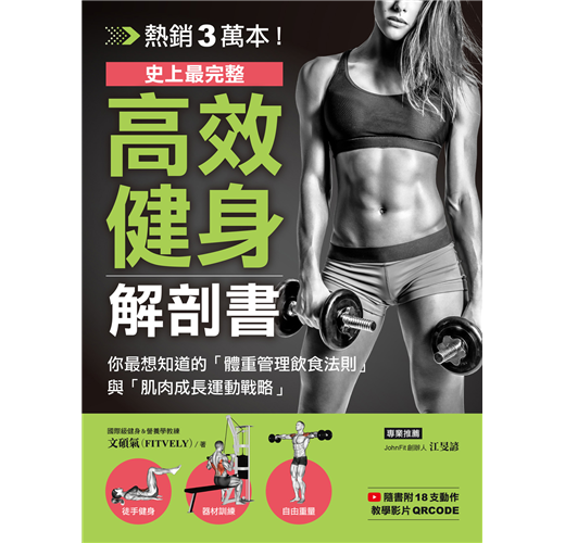 如果你曾經疑惑:「為什麼我運動再多都瘦不下來?」、「為什麼我練得這麼辛苦,肌肉還是長不大?」很可能是因為你使用的運動方法錯誤、零碎,而且不適合你!書中不講複雜理論,只告訴你最簡單易懂的「飲食」與「運動」知識,先快速瞭解「營養攝取與能量消耗之間的關係」,再利用豐富的插圖詳解身體結構,幫助讀者們獨自一人也能自己設計運動步驟與強度。只要熟悉肌肉生長的原理、瞭解減重的生理學和營養學,任何人都可以成為健身專家!