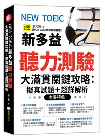 要如何在短時間內提升新制多益聽力的分數?是否有什麼訣竅呢?本書提供的是最踏實也是最省時的備考攻略,讀者只要能細細琢磨書中內容,一一身體力行,練到在聽英語的時候真的去聽關鍵要點,那麼也就算是完全掌握了訣竅,獲得聽力高分捷徑了。