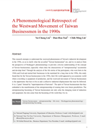 第一篇以台商角度提出過去的創業研究強調創業的經濟功能以及創業者個人的能動性,忽略了環境背景脈絡與創業者個人的相互建構。在〈1990年代台商西進的現象學回顧〉中,作者跳脫傳統創業研究的經濟視角,以海德格現象學分析三位西進創業台商的生命故事,並解釋了以下三個問題:(1)何謂台商、(2)1990年代為什麼出現台商西進的產業發展現象、(3)開創性流變如何影響台商的生活世界。研究結果有助於我們瞭解在特定脈絡的時空視域中的台商創業者多元面貌。
