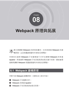 本書精選 Webpack 以及 Babel 兩大主題編排而成,Webpack 部分為前 8 章,Babel 部分則為後 4 章,兩部分之區分相輔相成,讓讀者更方便參考,知悉兩大核心工具的精髓。