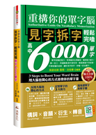 為求完整收納單字,「認識詞素」章節之後也將字首、字尾與衍生字另闢專章探討。要特別叮囑的是,由於字根大多不可獨立,屬於古字範疇,非現代英語詞彙,涉及語言學範疇與歷史淵源,學習不易,因此6000單字中含有不可獨立字根的單字皆統整於語意關聯的單字群組中,以符合本書核心——以已知推未知,以簡單字推演困難字的精神。