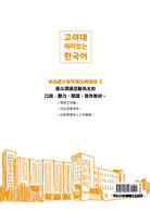 由韓國高麗大學韓國語中心編著、國立政治大學韓國語文學系陳慶智、朴炳善老師悉心翻譯、審訂。課程內容易學有系統,是教學成果最有口碑,品質最好、最精良的韓語課本。