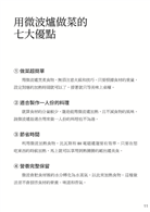 ◎烹飪最難控制的就是火候,用微波爐料理食物,只要設定好時間,不會臭火焦。