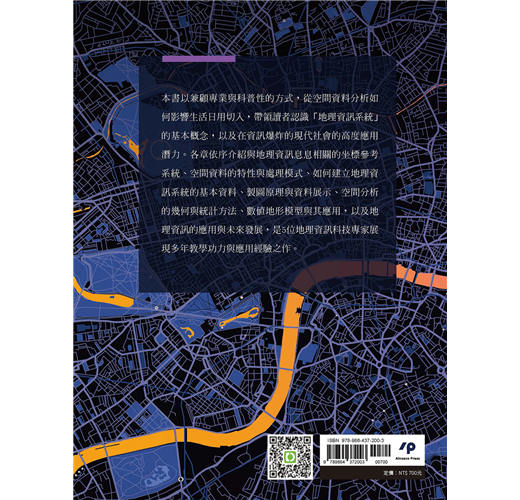 本書以兼顧專業與科普性的方式,從空間資料分析如何影響生活日用切入,帶領讀者認識「地理資訊系統」的基本概念,以及在資訊爆炸的現代社會的高度應用潛力。各章依序介紹與地理資訊息息相關的坐標參考系統、空間資料的特性與處理模式、如何建立地理資訊系統的基本資料、製圖原理與資料展示、空間分析的幾何與統計方法、數值地形模型與其應用,以及地理資訊的應用與未來發展,是5位地理資訊科技專家展現多年教學功力與應用經驗之作。