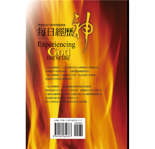 這本實用的每日靈修工具是亨利.布克比博士,及其長子理察.布克比博士的著作,帶領你每日以一節經文和一段激勵的默想開始一天的生活。內容詳盡闡述了由布克比博士主筆、膾炙人口的《不再一樣》(Experiencing God Together)研經本中的信息,相信這本《經歷神》的姊妹之作,將幫助你建立及維持每日專一向神的必要習慣。