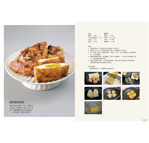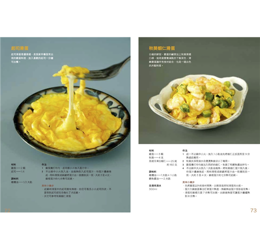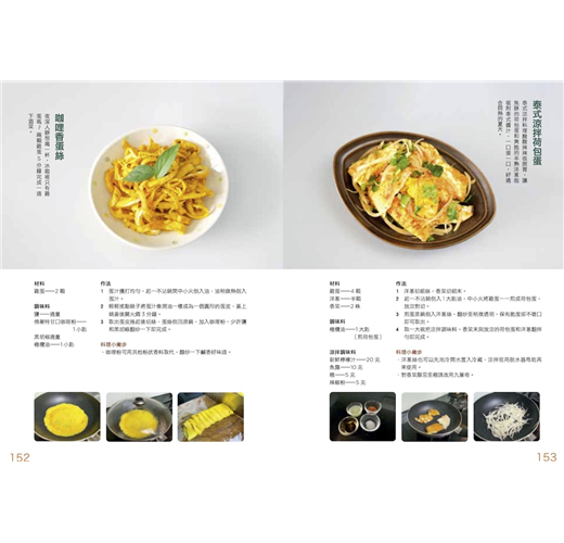 最後,想強調一下,身為一個資深煮婦背景的料理書作者,在示範每道料理時,我都會選用大家方便取得的食材,秉持跟各位一樣勤儉持家的美德,和善用省時省力的方式來製作,而這本《有蛋就好吃》更是根據雞蛋最基本的特性,並考量手邊沒有太多食材的情況下,也能變出來的各式純粹蛋料理,讓每一位參考這本料理書的朋友都感到物超所值,煮得放心,吃得開心。