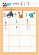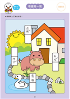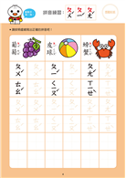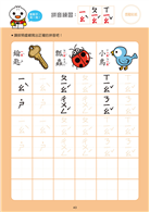 利用格線及虛線文字輔助,練習書寫標準的注音,可愛的圖片幫助記憶,讓孩子在練習書寫語詞的同時,增進運筆能力。