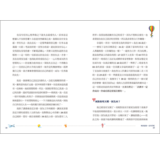 22歲時問:「30歲的自己,想過什麼樣的生活?」拿出紙筆,列出想要的人生樣貌。發現:唯有讓收入大幅成長,才能與理想生活更近一步。轉向從事保險業,更堅定助人的初衷;同時,入行三年,還清家裡負債,也贏得翻轉人生的機會。