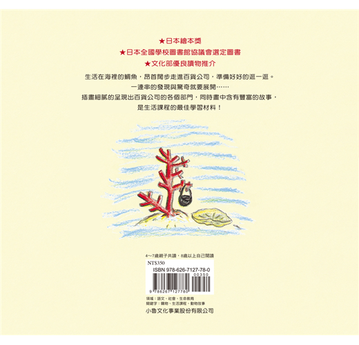 鯛魚會逛街嗎?在百貨公司裡看到一隻鯛魚,有些人大驚小怪、有些人見怪不怪,百貨公司的工作人員則是神色若定,秉持以顧客為尊的服務精神。圖畫裡的線索比文字還要豐富,除了朗讀、認字之外,更適合父母與孩子一同「讀圖」,細細品味作者與譯者的巧思,也是認識日本文化的最好途徑,更可藉此學習百貨公司裡的各個部門與標示。