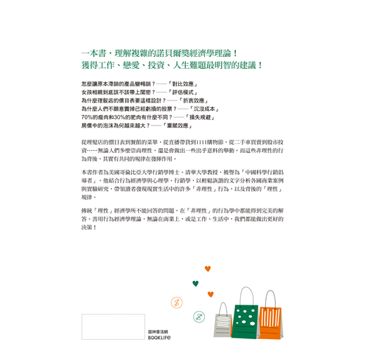 活讀、活用這本書,你將有能力洞察自己和他人的「非理性」行為,也有機會讓這些洞察產生更大的商業價值、社會價值。
