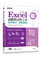 *介紹數學、文字、日期與時間、統計、財務、檢視參照、邏輯、資料庫、陣列與資訊等Excel內建函數,搭配書中大量的實用範例與馬上練習,讓您有效學會Excel函數的使用技巧。