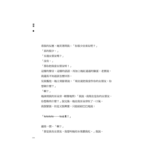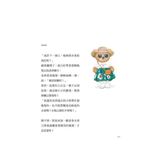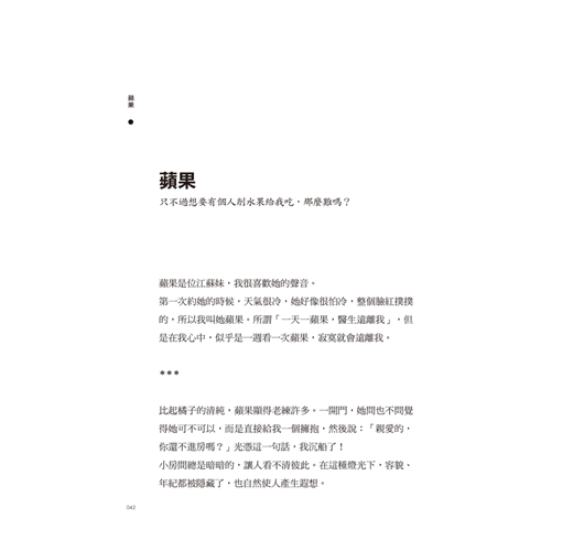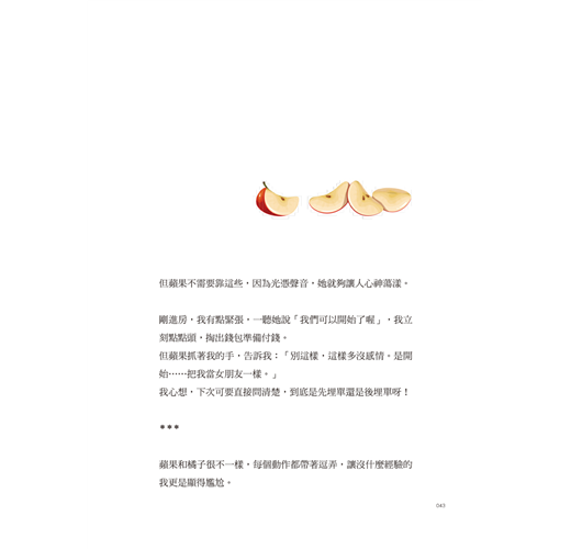 當我好不容易存到錢,要去找蘋果殺鳳梨時,她卻已經離開了,就像其他曾讓我腐爛的生命散發出幸福香氣的水果小姐們,不會再回來。