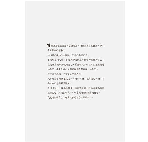 但最後還是寫了出來,這是我人生中很重要的一部分,以前我不想隱藏,現在也不想,以後也不想。因為這是一個真實的我。
