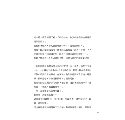 現在我卻是想著人生苦短,說不定回家的路上就被車撞死了。幹麼不充實自己,看自己最後會變得多不一樣呢?我開始讀書,開始回學校上課,開始到處演講,努力活著。