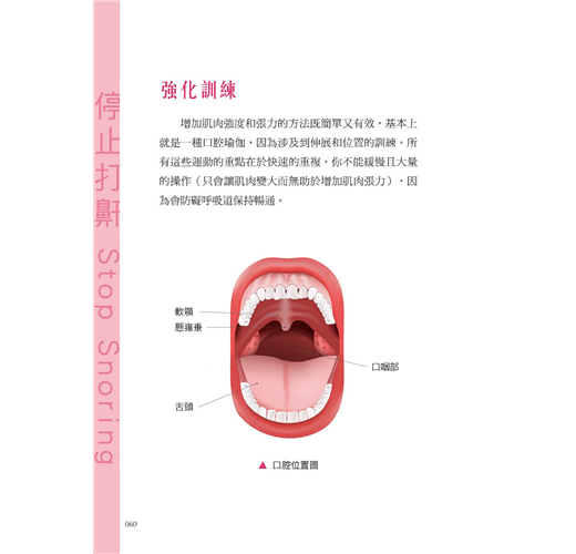 三、提供多種針對舌頭、軟顎、喉底部的簡易止鼾運動,可自主練習,無須醫療介入。