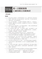 練習題目是驗收自己是否吸收的一個很好的方式,所以在每個課文重點後面,均附有相關的練習題,屬於小範圍的單元練習,藉此可以慢慢累積解題的方法、速度等,對於考試很有幫助。另外在讀完各篇章後,再搭配本書收錄歷屆試題與解析,更有助於了解最近幾年的命題重點,在國貿業務乙級技術士專業的路上,可獲得事半功倍之效。