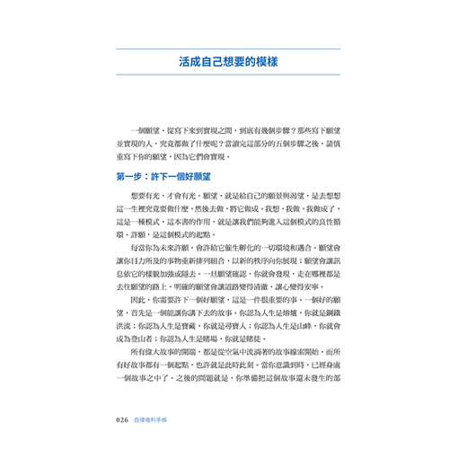 人的信念能夠對行為帶來影響,我們的大腦隨時隨地都準備好做出各種改變,堅信自己的預言一定會實現,讓自己的行為配合信念,進而促使願望實現。把這樣的想法寫下來,對大腦發出正面訊號,只要每天重複,就能讓感知的大腦部位持續發展,大腦會認知並記住重複的模式,活化正向的基因,你會發現自己真的照著這些文字在行動。