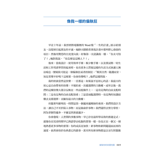 每個人都可以適時地劃下界限,堅定自己的時間表,不要輕易被影響。看著自己日復一日地做著對的事,你也慢慢學會找到獨特的人生態度,有想做的事,就會付諸行動,而不是空想而已。