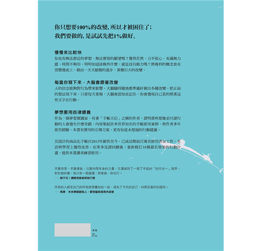 你需要的不是大道理,而是讓自己動起來!動起來也沒有想像中那麼難,不需要做到 100%,只要改變 1%,願望就有實現的可能。