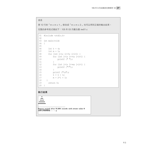 本書的實作題以 C 語言來進行問題分析及程式實作。實作題的解答部份可分為四大架構:解題重點分析、完整程式碼、執行結果及程式碼說明。在「解題重點分析」單元中知道本實作題的程式設計重點、解題技巧、變數功能及演算法,此單元會配合適當的程式碼輔助解說,來降低學習者的障礙。