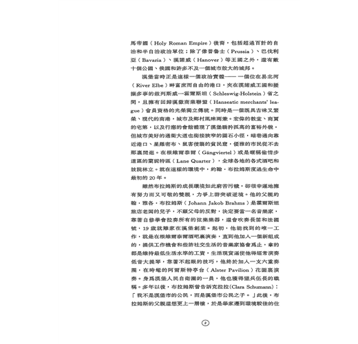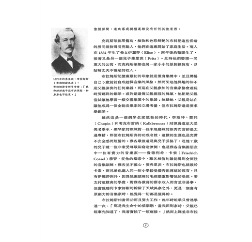 布拉姆斯粗獷的外表,掩飾不了他在給好朋友的信中,所流露天生的敏感個性,與真誠而寬容的心。本書蒐羅了這位偉大作曲家的信件、插圖、最生動的照片,相信會引起各位的迴響。