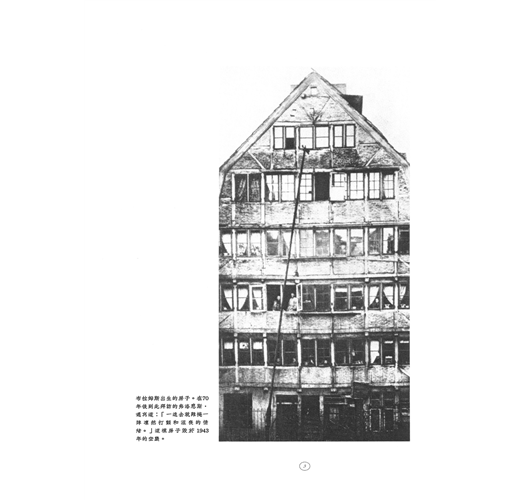 ……這間房子坐落在狹小陰暗的庭院中…… ,木造陡峭的樓梯通週這楝建築眾多不同的樓層…… ,一進去就難掩一陣令人凜然打顫和沮喪的情緒。樓梯口面對一處狹隘的空間,半是廚房,半是客廳,煮飯和孩子的床鋪侷限在一起;進去第二道門則通往起居室,是有窗的臥房,但實在小得不像個房間,連角落或櫥櫃裏都沒有任何其他東西。
