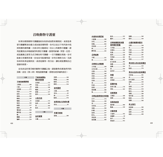 ★第2章:以召喚動物守護靈的時機為檢索分類,方便依據自身當下需求向守護靈求助