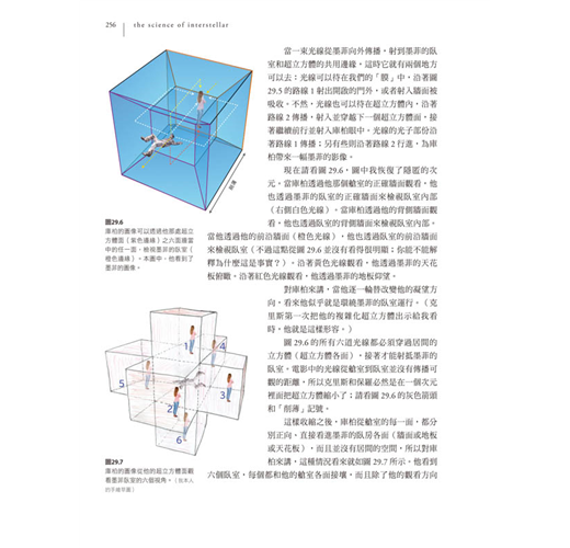 我的詮釋通常都針對片中情景來鋪陳,描繪我心中設想其幕後的可能發展:「巨人」(Gargantua)黑洞的物理學,黑洞的奇異點、視界和可見外觀;巨人的潮汐重力如何在米勒的星球上激起四千尺水波浪濤;具有四個空間次元的超立方體如何傳送三次元的庫柏穿越五次元的「體」……