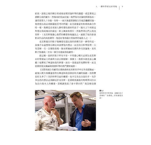 這裡要感謝克里斯多福.諾蘭、喬納森.諾蘭(Jonathan Nolan)、艾瑪.托馬斯(Emma Thomas)、琳達.奧布斯特(Lynda Obst)和史蒂芬.史匹柏(Steven Spielberg)引薦我進入好萊塢,給我這個實現夢想的大好機會,讓我能把科學之美、誘人的魅力與強大威力的信息轉達給下一代。